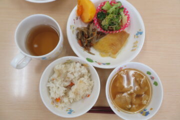 この日はたいよう組さんが作った2品『炊き込みご飯』と味噌開きの味噌を使った『味噌汁』でときこさんをおもてなしして感謝の気持ちを伝えました。