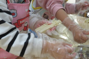 主な工程はきのこを小さくちぎることですが・・・楽しみです。
