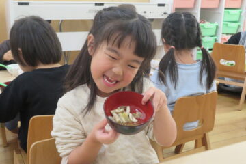 出来上がった『きのこのすまし汁』をみんなでおいしくただきました。