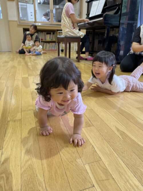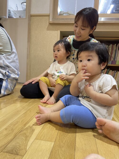 リズムが始まると、お兄さんお姉さんの動きを不思議そうにじーーっと見つめるみんな😊