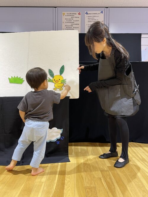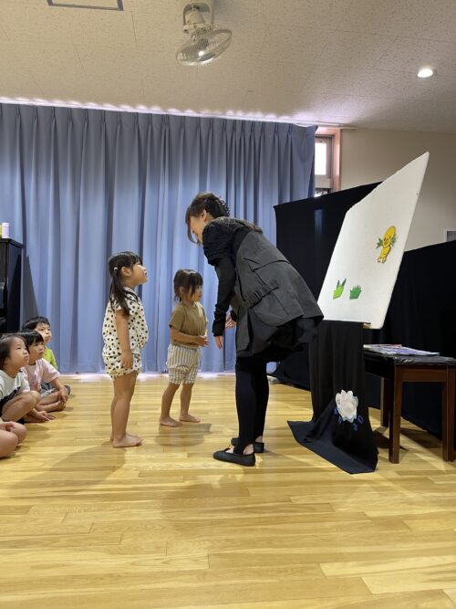 前回パネルシアターを見せてくれたふわふわさん。今日は人形劇をしてくれました✨