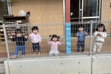 お庭であそんでいるお兄ちゃんお姉ちゃんたちを見つめる、可愛いつくし組さんです😍